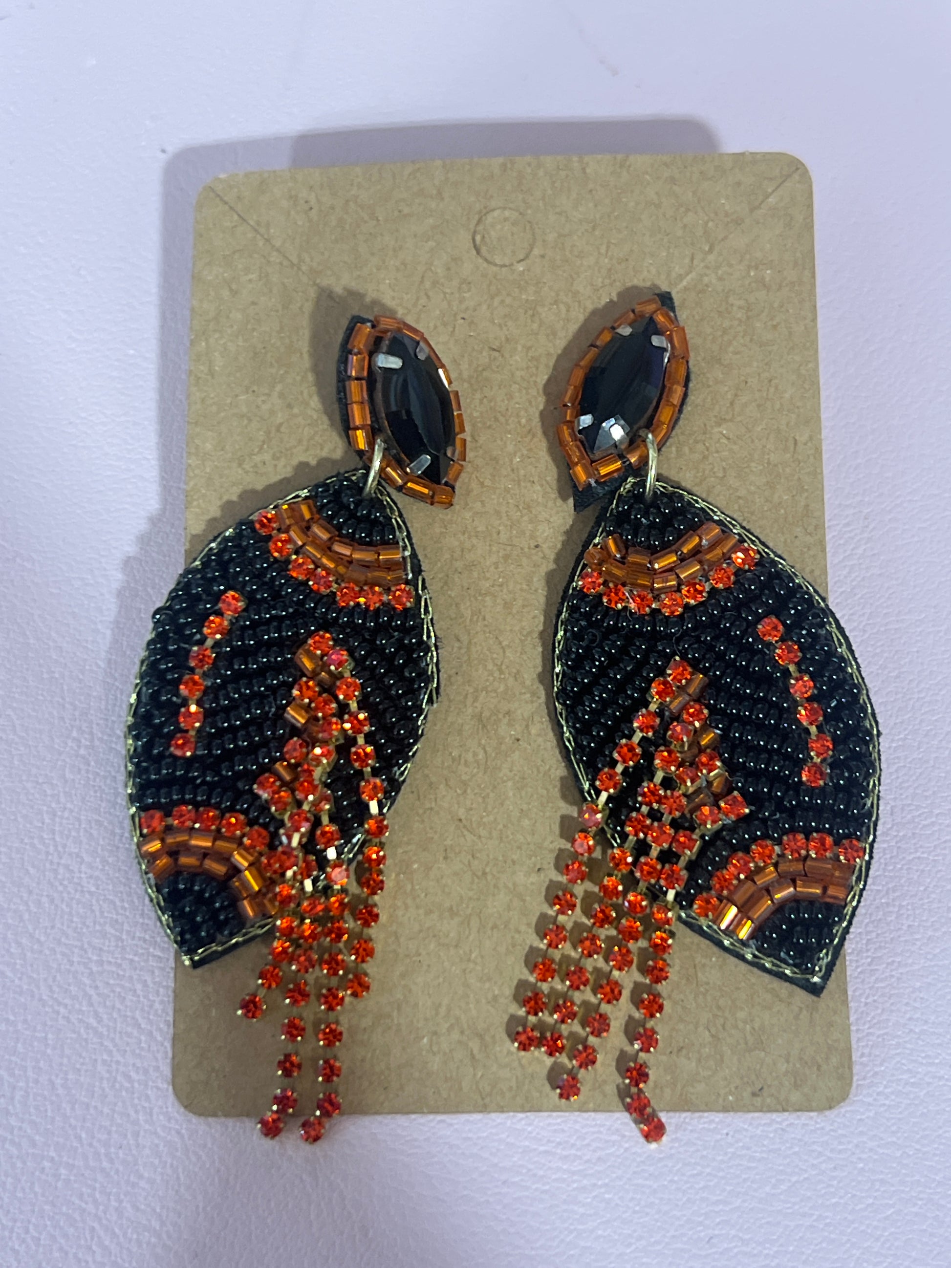 Orange and black football earrings